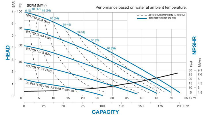 进口气动隔膜泵口径尺寸是1寸,容量是0到53加仑200公升,是一个大容量,高压高效的气动隔膜泵。