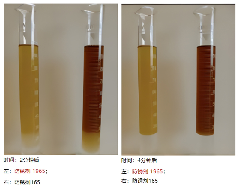 在抗乳化性(疏水性)以及抗腐蚀性,防锈剂MM-CI 1965媲美甚至超过目前市场上的主流产品:165、 19909产品。