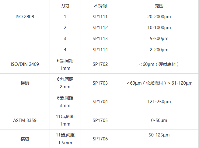 TQC破坏性测厚仪刀刃有SP1111/SP1112/SP1113/SP1114四种型号,不锈钢材质,用于测量单一或多样的底材的涂层测厚。